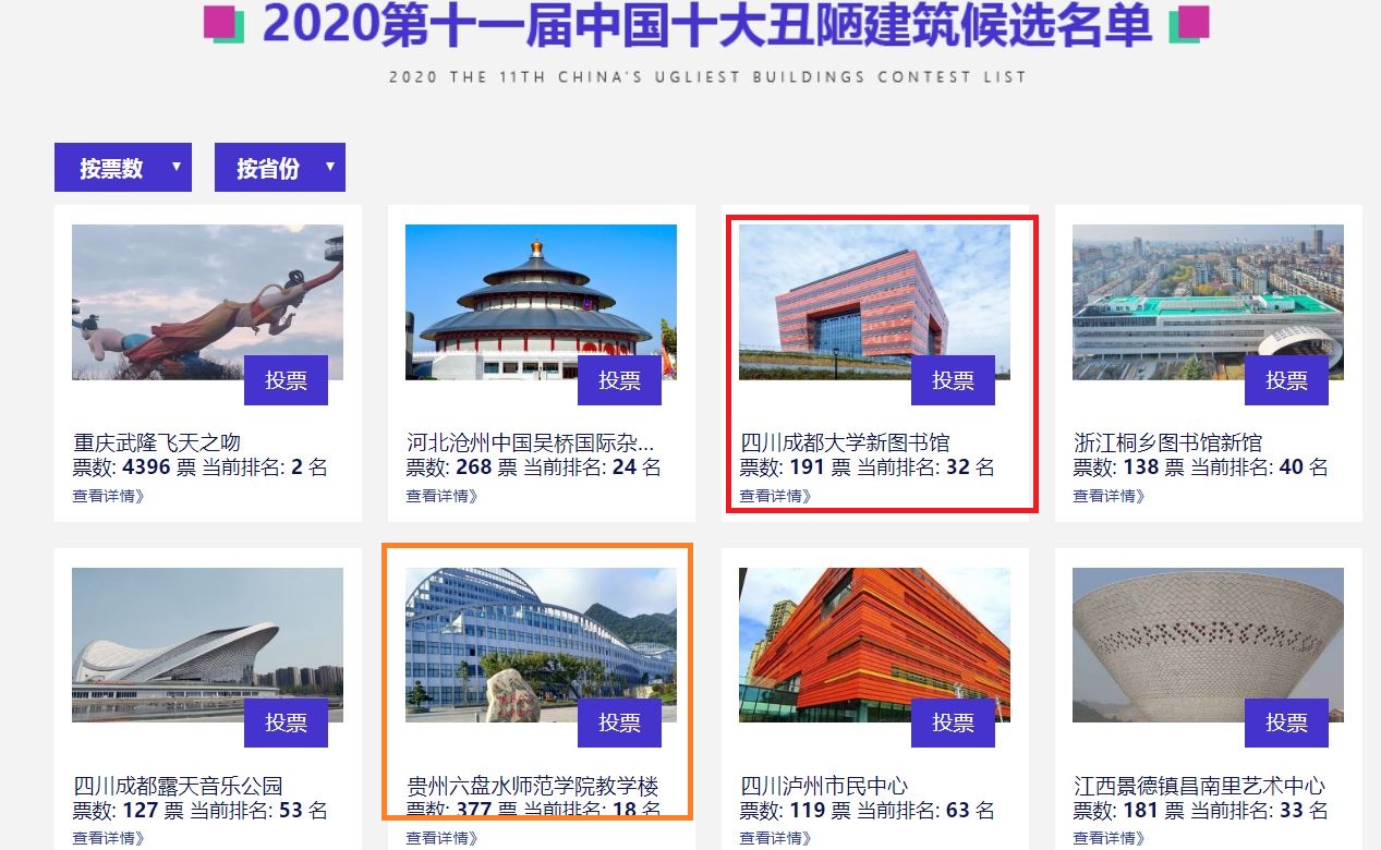 另外,上文提到的两个项目进入了2020年第十一届中国十大丑陋建筑评选候选名单: