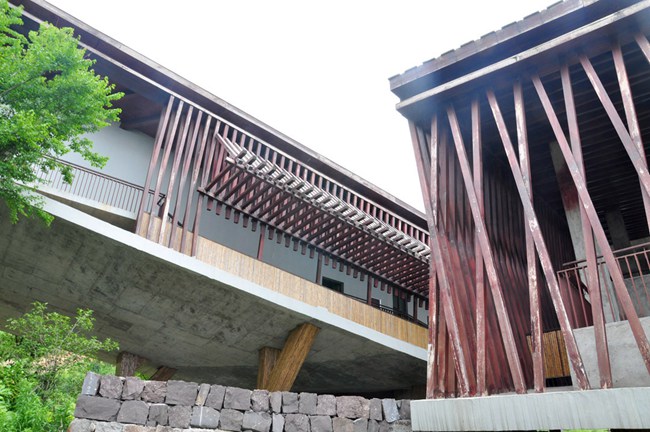 该项目位于东钱湖风景名胜区环南湖岸线八大景点之一的田螺山景点,项目东侧为田螺山,东南侧为中国首位普利兹克建筑奖获得者、著名设计大师王澍设计的田螺山茶室(展厅)。项目由中国美术学院风景建筑设计研究院设计,整个建筑面积约3000平方米,以“U”字形布置向南面打开,并于“S”形茶室(展厅)相呼应,前低后高,依山就势,体现传统山地建筑营造的基本手法,主要有书画展览、书画研究、文化研究等三大主要功能。