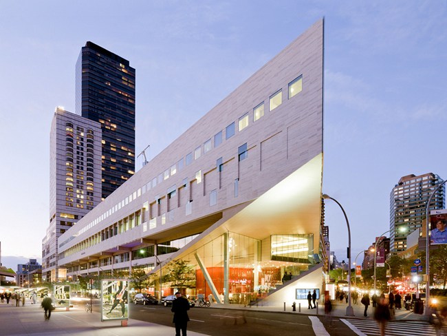 DS+R事务所设计师表示,我们对这个会场的二次设计的目的在于,把会场从一个多功能大厅升级成一个通过满足各种演出的功能需求从而与周边街道形成对话的室内音乐首映室。这个会场坐落于茱莉亚学院之下,不同于楼上所采用的不透明建筑表皮,楼下的会场通过采用全透明玻璃幕墙来向街道展示内部空间。