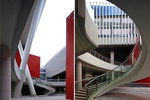 紧凑集约、多元复合——在相对狭小的场地内合理安排六大功能,通过平台、屋顶、连接体形成一个巨大的有机整体,达成形象鲜明、协调统一的效果。不同功能主体之间有紧邻和疏离等不同关系的处理,形成丰富的空间形态和多样的灰空间。