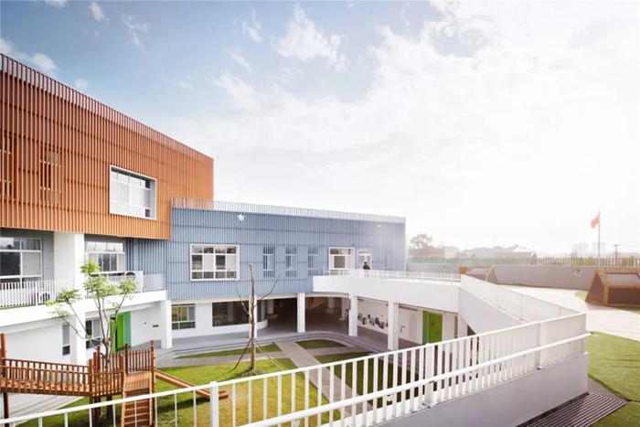 设计利用不同标高的屋面平台,在二层、三层形成多个班级活动区域,可对应特定班级使用,领域感与开放性并存。
