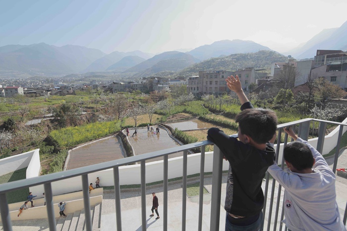 在每一个高度上远眺,田园、河谷、远山,这些场地的元素都将深深刻印在小朋友的认知中,成为他们心中童年与家乡的记忆。