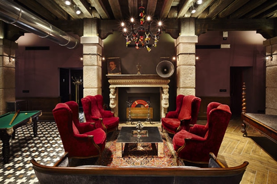 大堂室内设计尽量保留古老风格元素,以体现威尼斯地区的传统文化。木梁与砖墙书写着建筑曾经作为谷仓的古老生命气息。精心安置的聚光灯、做旧的Chesterfield沙发、翻新的桌子、随处可见的当代艺术品,甚至Philippe Starck大师设计的椅子,以及古老的餐桌共存一室。此外,旅社内还可举办诸多娱乐活动,为入住旅客增加活动体验。