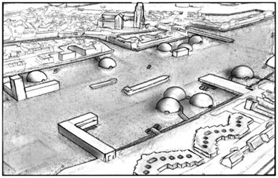 我们想尽量少改变人们目前的生活。变化一定会有。在水上生活,会让人宁静,因为水能让人平静下来。人们还可以在自己房间里钓鱼,把钓鱼杆从窗户伸出去就可以等着鱼上钩了。人们在浮动城市里相互尊重,也尊重自然、环境,不会有污染。当然我们倡导的这种新的生活方式十年、二十年以后,也许会改变人们的生活方式,比如没有交通阻塞,汽车可能会消失,取而代之的是新的环保交通工具。人们也会继续种粮食,不过种植的方式可能会有新突破。