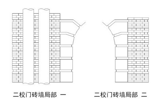 二校门、清华学堂、同方部三栋建筑的砖墙均采用的是青灰色粘土砖,局部凸凹的图案呈现出明显的一致性,分别见图1-4。这种砖的图案式设计是将反复出现的要素有序的布置为一种图案,从建筑物的不同距离观察,图案会逐渐发生变化,这是因为基本单位的砖块造成小尺度的图案与整个立面上用整面墙创造的大尺度图案形成对比,称作“二次质感”,图案表现为平面的形式,具有概括性和节奏感。