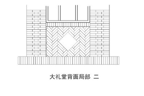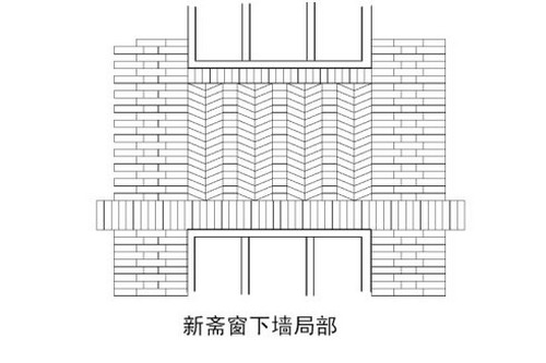 大礼堂的背面、老图书馆、新斋以及1号楼的红砖墙面,砖的砌筑方式和形成的图案有一定的渊源关系,分别见图5-9。