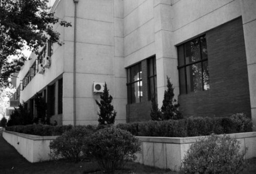 砖在学校建筑里的应用不仅表现了校园的文化内涵,它更起到学校建筑整体上从红区向白区转化的过渡作用。清华大学很久以来就有红区和白区的区分,前面提及的建筑均是红区的代表。在后来的校园发展和建设过程中,曾有一次大的变迁,即从红区向东扩展,建起了现在的主楼及其前后区,形成新的校区。按规划学校重心向东转移,以主楼的南北轴线为新校区的中轴线,在东区逐渐建起了建筑馆、经管学院、技术科学楼以及华业、同方、紫光等科研楼,形成了统一的现代建筑风格的建筑群,按其形象被称为白区。人们在谈到白区建筑与校园总体面貌的关系时总是将它和红区割裂开来评判,认为红区和白区之间毫无关系,甚至是对立的。但我们若是注意到砖在建筑中的应用并从总体的眼光来看一个校园建筑就会发现从红区到白区之间有逐渐过渡的关系。