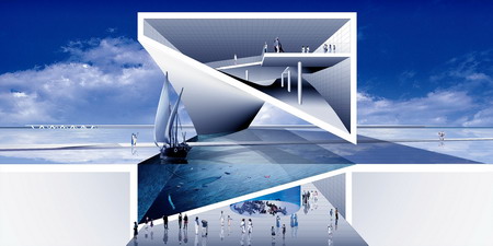 安藤忠雄设计的海事博物馆最重要的任务是反映阿拉伯辉煌的航海传统,因此他从阿布达比的自然风景、地形地貌中撷取灵感,可反光的表面消灭了海洋与陆地的视觉界线,宛如船只构造的内部空间并设有漂浮的甲板引导来访的游客进入其展览区域。