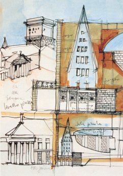 罗西的作品尤其是当他的作品与城市问题相关联时,常常是建筑类型学与城市形态学结合在一起来考虑的。例如他的住宅设计(就是发掘意大利城市住宅形态,继而衍化为建筑的类型构图而得出的杰出作品。在这件作品中他特别强调了柱廊这种类型。