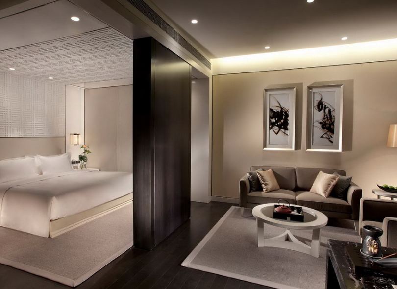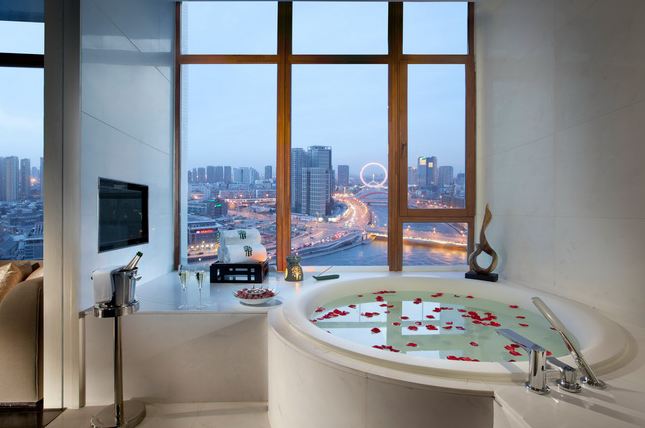 希望将海岛度假的感觉带入城市,是悦榕庄一直在坚持做的。进入大堂就开始体验轻松悠闲的氛围。在天津悦榕庄内,159间客房都以中国传统水墨画的柔和色调和线条为设计灵感,卧室和浴室的部分更以白色为主色调。浴室中的超大圆形浴缸大概是房间内最舒适的一隅了,奔波一天之后,你可以点上精油蜡烛,在撒上玫瑰花瓣的浴缸中欣赏窗外的城市夜景。
