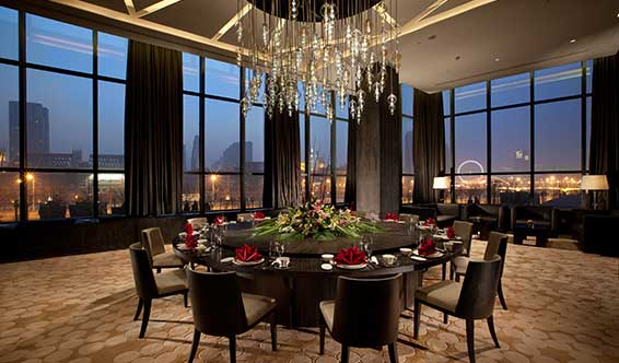 酒店内的 5 个餐饮区域将中西方文化全面的诠释。白云餐厅内,是中式餐厅;扒房内是西餐厅,高脚杯、酒台、月光让你度过一夜浪漫的夜。