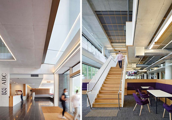 四层的澳大利亚广播公司办公楼坐落于墨尔本文化区南案一个游乐场边。项目由Richard Kirk事务所设计,塑造了激动人心、健康舒适的工作空间,契合广播公司未来的发展目标——增强科技和人之间的联系。