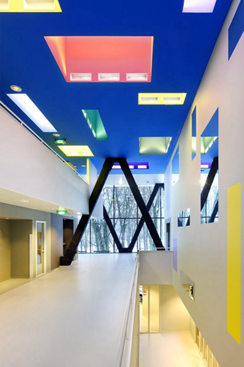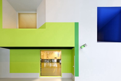 建筑散发着自信和高效的气质。这是一个友好,开放,可在原生自然环境中活动的疗养之地。这建立在建筑师与客户的良好沟通。比如一个木楼梯设置,形成了新的动线,有利于不同楼层间的交通,让在建筑里漫游有更多的选择性,同时可以达到锻炼的效果。天井和各种挑探形成多重空间,并使得自然光深入建筑30米进深。微妙,醒目的色彩和光照让空间异常活泼。