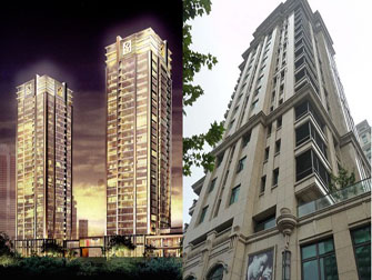 立面作为每栋住宅的名片,高端公寓的品质感最为重要。立面色彩的庄重、华丽,造型图案的典雅大方、建筑细部符号的选择以及立面用材的配置都是带给客户立面印象感觉的重要方面。以锦麟天地为代表的新天地板块早期的作品,和当前市场大多住宅类似,以非石材的立面为主要成分。 |