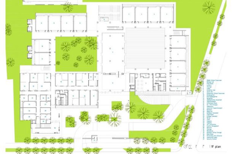 四合院的形式不仅可以连接文化和继承社会的引用,但其半开放式的走廊也避免了能源密集和全封闭建筑物的不透明性,使教师和学生总是处在与太阳,风和光接触的周围自然环境中。小学的院落朝向西面,周围是草地庭院,而有一组保护树木所在的初中/高中四围绕着一个大型木材平台。