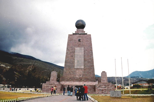 位于城北24千米处的赤道纪念碑是基多最为著名的一个景观,此碑通高8米,用棕色花岗岩制成,碑身四面代表东、南、西、北四个方向,一个南极朝南、北极朝北的地球仪摆放在碑顶,一条白线代表赤道环绕在地球仪的正中间,把地球分成两部分。