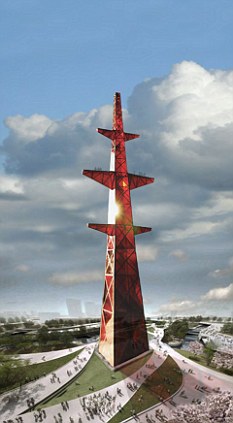 据报道,这项建筑资金有印度钢铁巨头米塔尔(Lakshmi Mittal)的赞助。这个项目还吸引了世界众多著名的设计师,其中包括荣获特纳建筑奖的著名设计师安尼施·卡普尔( Anish Kapoo)和安东尼·葛姆雷(Antony Gormley)。现今,伦敦市政府已经收到五种设计方案,并计划在两周内公布最终选定方案。上图展示的是保罗·弗莱尔(Paul Fryer)提交的设计方案效果图。这个效果图被弗莱尔命名为“Transmission”,整体设计为半透明建筑,足有400英尺高(约121.92米),并附有观光塔的功能,利用太阳能技术提供所需能源。