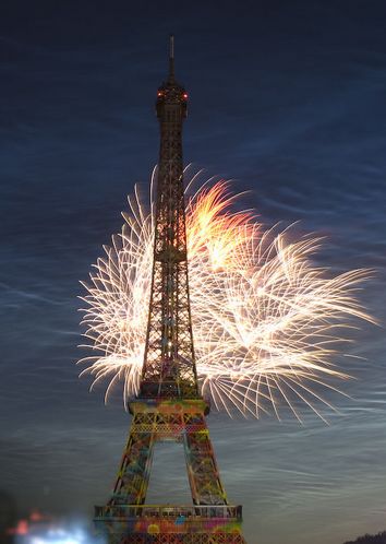 1889年,世界万国博览会在法国巴黎举行,同年亦是法国大革命百年纪念日,为了纪念这个特殊的日子,由法国人古斯塔夫艾菲尔(Gustave Eiffel)设计建造的艾菲尔铁塔在当时的巴黎市中心落成。它是法国工业革命后现代艺术在建筑领域的一个完美表现。它独特的全金属结构在当时确实是太为改革创新:艾菲尔铁塔由一百五十万个铆钉连接固定,艾菲尔还曾决定将18038个铸铁配件更换为更为轻巧坚固的合金配件,所以,最后建成的艾菲尔铁塔非常“轻”。在它所矗立的水泥地面上,每平方厘米只承受4.5公斤的压力。它的总重量是10000吨,其中包括7300吨的四脚金属支架。它的四个支点间形成了一个边长为125米的正方形。艾菲尔铁塔的1665级阶梯能将您送至310米高度的塔顶。加上塔顶部天线的高度,艾菲尔铁塔总高度为324米。它的第二层在离地面149米的高度上,第一层也离地面有91米。在它建成的时候,艾菲尔铁塔曾一度是世界上最高的建筑,并将此纪录一直保持了45年,直到1931年纽约帝国大厦落成。