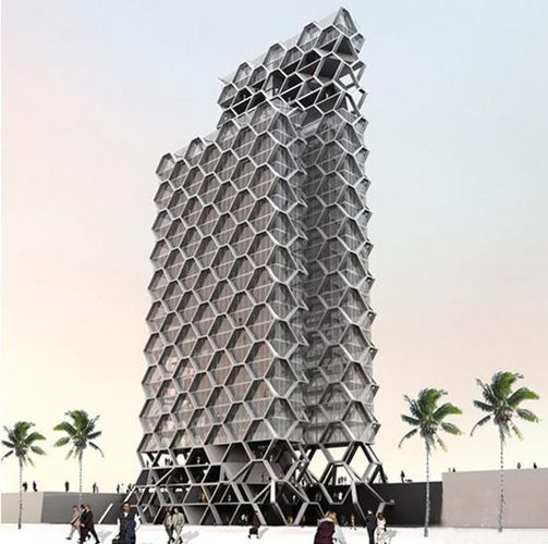 蜂巢大厦(Howers)位于墨西哥市东北方的圣达菲(Santa Fe)地区,由墨西哥Rojkind Arquitectos建筑事务所设计,地区发展规划案中找来了十家不同的建筑事务所分别设计十栋集合住宅大楼,蜂巢大厦则为其中之一。