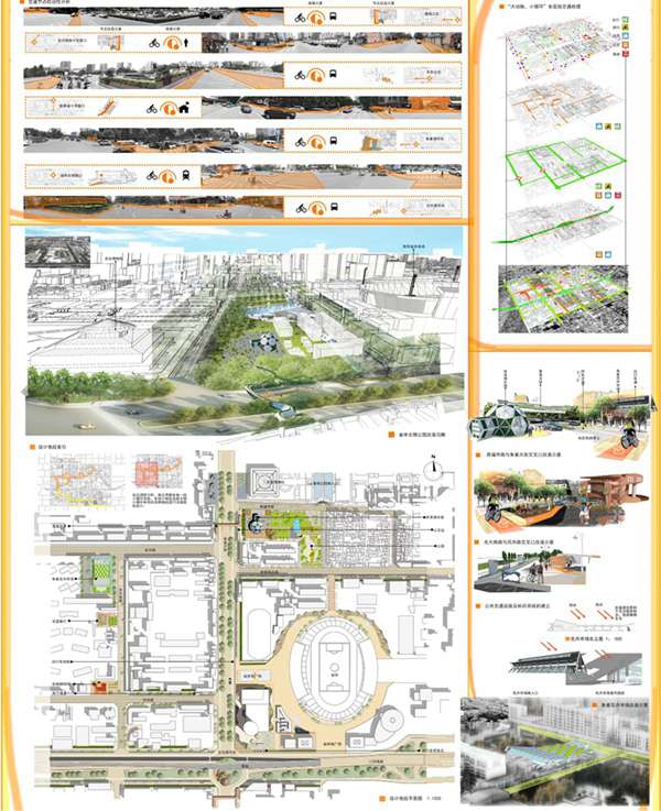 作品介绍:该毕设关注了西安城市南郊的交通与生活现状,发现了问题与不足,试图通过提供长距离、跨区域的日常通勤与生活性街巷的人居活动的沟通与联系,进而针对重要的单位地块、公共场所、交通节点、功能空间进行疏导化、无障碍化、人性化的改造、优化与设计。
