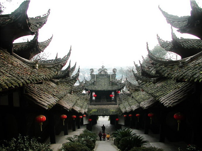 青城山位于成都西北都江堰市境内,距成都75公里,青城山为邛崃山系中的一个环扣。山峰呈形排列,状如城廓。山上林木茂盛,终年青翠,故名"青城山"。以"青城天下幽"名扬四海,有日出、云海、圣灯"三大自然奇观"和洞天乳酒、苦丁茶、道家泡菜、白果炖鸡"四绝"。青城山还是中国四大道教名山之一,被称为"第五洞天",道教创始人张道陵曾在此修炼并羽化;青城道家气功闻名遐迩。从山门入口处的建福宫沿着被杜甫称"丹梯"的石级向上攀登,道旁古树参天,浓荫蔽日,是"苔深不雨山常湿,林静无风暑自清"的避暑胜地。山上的常道观、天师洞、古银杏、掷笔槽、三皇殿、手诏碑、麻姑池等都充满种种传说。青城山,是我国著名的国家级风景名胜旅游地。杜甫、陆游、张大千、冯玉祥等仁人志士曾在此驻足留连。