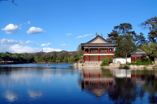 承德避暑山庄,是清王朝的夏季行宫,位于河北省境内,修建于公元1703年到1792年。它是由众多的宫殿以及其它处理政务、举行仪式的建筑构成的一个庞大的建筑群。建筑风格各异的庙宇和皇家园林同周围的湖泊、牧场和森林巧妙地融为一体。避暑山庄不仅具有极高的美学研究价值,而且还保留着中国封建社会发展末期的罕见的历史遗迹。