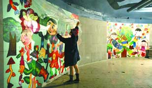 杭州地铁雕刻艺术壁画《莲响节拍》 |