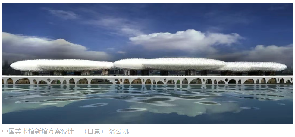 十多年前,潘公凯就曾涉足建筑领域,做了两版中国美术馆新馆方案,并创造性地把三馆(美术馆、文化遗产馆、国学馆)连成一片。