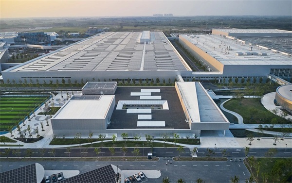 作为项目点睛之笔,投资1.75亿元的蔚来中心(NIO House 昵称“牛屋”)由丹麦SHL建筑事务所设计,外形像椭圆飞碟,优雅地坐落在园区入口。建筑打通了“台前”与“幕后”的任督二脉——访客不仅能喝着咖啡看车,还能透过连廊,直接看到蔚来第二先进制造基地里汽车诞生的全过程,可谓是无缝连接“逛街”和“探厂”,把工业旅游玩出了新高度。