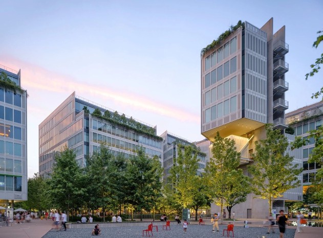 建筑师皮亚诺以“切开的苹果”为概念,通过硬质铝板幕墙包裹柔软的内核空间,形成内外交融的体验。建筑群体通过错动、退台等手法,将自然光、绿植与公共空间层层渗透,并借鉴诺利地图的公共性理念,打破传统边界,使广场、庭院与街道形成连续的城市界面,推动空间共享与人文互动。