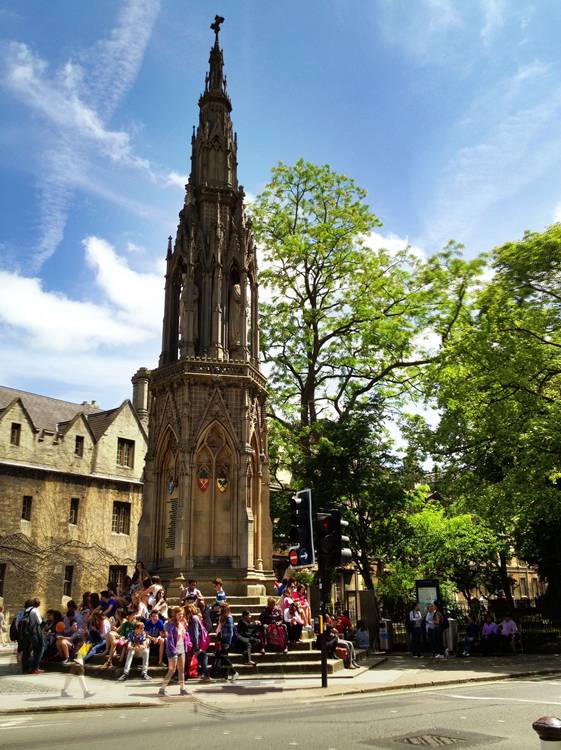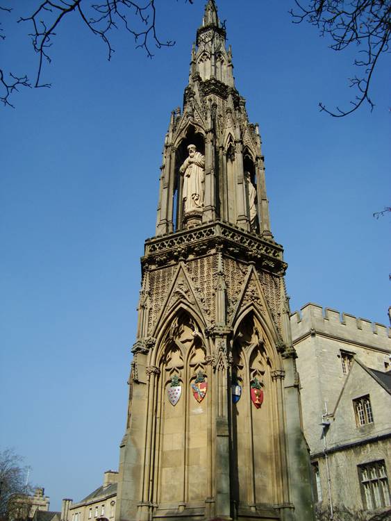 通往牛津大学的巴利奥尔学院(Balliol)的岔路口处有一座殉道者纪念塔(Martyrs' Memorial)塔上有三尊雕像,分别是坎特伯雷大主教托马斯.克兰默(Thomas Cranmer),若您看过剧集《都铎王朝》,就应该不会对他很陌生;伦敦主教尼可拉斯.里德利(Nicholas Ridley);温彻斯特主教休.拉蒂默(Hugh Latimer)。这三人的受难地并非是在纪念塔的所在地,而是在伦敦塔的北侧,现在的马路正中。