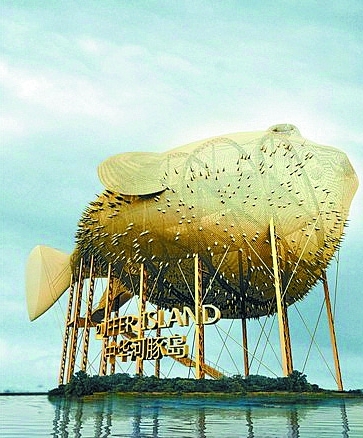 2013年9月末,江苏扬中被曝花7000万元建造河豚塔,作为第8届江苏省园博会的重要标志。这条宽44米、高62米、长90米的巨型“河豚”,是对着河豚标本,按比例放大设计建造的。重约2100吨,外表由8920块不同形状的黄铜金属表皮单元空间定位拼接而成。据介绍,这是目前国内最大的异形钢结构城市雕塑,体积则创下世界之最。这样一个巨型地标,引发了不小的争议。有网友认为,中央去年12月就出台了八项规定,倡导厉行节约,反对浪费和面子工程,而当时河豚塔项目并没有真正进入施工建设阶段,且河豚在某种意义上恰好是公款吃喝的代名词。此后中央出台的有关六项禁令、禁止政府机关新建楼堂馆所等政令,其精神也都一脉相承。更何况,当前最迫切的不是城市景观这类形象工程,而是民生实事。