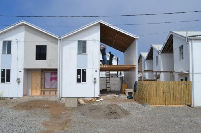在 Constitución有一个为了贝尔德镇的规划设计,在完整的区域内建造两层半的住宅,建筑的视觉设计是不同的,但概念是相同的;房子的一半是完全相同的,但另一半完全独特。完成的那一半的一层地板是由未完成的混凝土地板组成的,第二层覆盖未完成的胶合板。厨房里只有一个水槽,没有其他的电器,但房子便宜、实用并且能很好的绝缘。所有的家庭都不会只有一个简单的建筑,如混凝土基础、水管和电力,已经为他们完成了。智利政府支付道路、排水、污水处理、垃圾收集、公共汽车和其他必要的基础设施,这些都致力于建设一个良好的社区。居民只需提供他们的时间、劳动力和任何额外的材料。