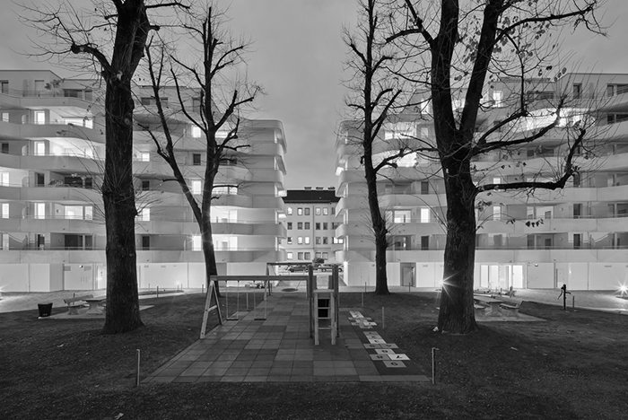 通常补贴住房要求用客观的方法给予社会持续性以特别关注。而且这种关注的重要度不低于规划和建筑质量方面的要求。在该住宅开发项目,建筑师Schenker Salvi Weber 完美的解决了每一个问题,打造出一个具有规律起伏外观的建筑群以及被建筑限定的庭院。