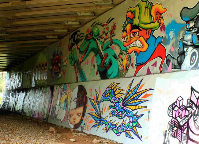 Buona Vista的入口在Block 43旁边的停车场,因为周边施工,这边安装了铁质的楼梯,虽然不是很稳,但比起一年前徒手攀爬土坡方便很多。这边,最显著的标记是桥下的涂鸦,而在桥的上边是熙熙攘攘的商业区,两者形成了鲜明的对比。