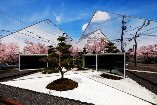 这个镜子屋的设计来自Bandesign工作室,而之所以这样设计当然也并非是建筑师受到了诺兰的影响。原因在于咖啡厅的沿路岸边种植了一排樱花树,每年的赏樱季节会有许多人来这里欣赏樱花。