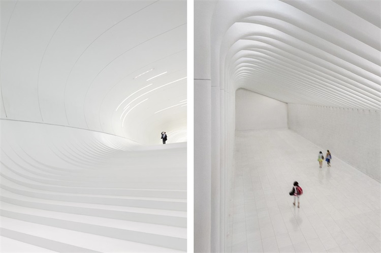闪闪发光的白色大厅看起来像是出自于明星建筑师之手:曲面墙壁和凌冽的灯光令人想起扎哈·哈迪德设计的的阿塞拜疆阿利耶夫文化中心(Heydar Aliyev Centre),或者圣地亚哥·卡拉特拉瓦设计的纽约世界贸易中心PATH车站(World Trade Center PATH Station)。