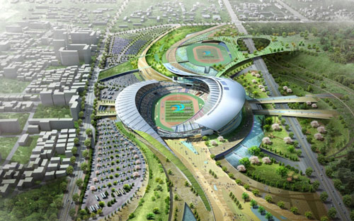 体育场由Populous(之前的HOK Sport Venue Event), Heerim Architects和Planners共同设计完成,在2014年亚运会期间可接待观众70000人次,亚运会之后它的规模会被缩小,成为一个拥有3000个座位的体育场和公园。