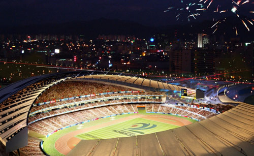 体育场优雅的斜面结构是为了反映出传统的佛教仪式中的Seung Moo舞蹈。建筑设计师Daekwon Park说:“在建筑设计中,就好像是在舞蹈设计中一样,动态的动作创造了体育场的形状。体育场总体规划图的内部形状代表了一种阴阳互为补充的形式。”