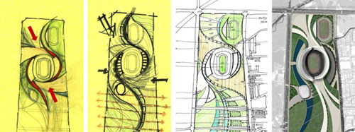这个体育场被描述成为“为重要赛事设计的可持续性的集会地点的一个新的纪元”。保证建筑结构的环保性,并可以吸引数以千计的观众来观看赛事上一个非常具有挑战性的目标,我们非常期待见到Populous是怎样实现这一功绩的。