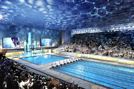 大型体育场馆在赛事之后的再利用问题也是全世界面临的共同问题。很多国家也都没有解决得很好,也没有特别好的先例。像我们的鸟巢和水立方在这方面考虑得还是比较周到的,比如鸟巢在奥运会之后也举办了一些大型活动。水立方在设计之初就已经为赛后的运营事先做好了规划,在最初做概念设计的时候首先是从赛后应用方面入手的,当时我们考虑它会是一个奥运遗产,会永久保留下来,会有30~50年甚至更长的服务大众的使命,所以我们就在水立方里面加入了很多与水相关的功能,其实很多都是为了赛后而设计的,而在赛事期间可能是由于工期及资金问题,有些空间是不可能完成的,所以在奥运期间它们都被“隐藏”起来了。现在,水立方完成了一个“转身”,从赛时模式转变为赛后模式,在今年7月底或8月初就可以重新亮相了。那个时候大家就可以看到比以前更多的功能,而且原来很大的比赛场所会变小、瘦身。比如,在设计之初,我们在整个场馆的南边做了一个戏水乐园,叫做“欢乐水魔方”,里面会有很多水滑梯、水滑道,以及一些孩子们喜欢的水上游乐设施;比赛大厅也“瘦身”了很多,大厅两侧都盖起了小楼,这些小楼上将来都会开设一些商业、餐饮门店,以供观众赛后消费;另外,还有一个网球场地,其实以前是一个冰场,但是后来不知出于什么原因,把它建成了一个打网球的场所。