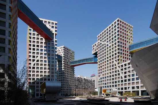 从2003年至今,斯蒂文·霍尔建筑师事务所一直致力于中国新复合体建筑的研究与设计,他们不仅通过对材质的实验及开发利用,进行了光线与感官现象的研究;而且充分利用了地热制冷与采暖、太阳能光伏电板和中水回收利用等绿化策略。为了让更多人关注新建筑复合体的发展趋势。霍尔在接受美国时代周刊采访时说:“我之所以在中国工作,主要原因是可以自由展望、了解21 世纪的建筑远景,比如可持续性能源体系和综合型都市。美国房地产开发商一定得来中国,亲眼看看真正的可持续能源体系在北京是如何实现的。”