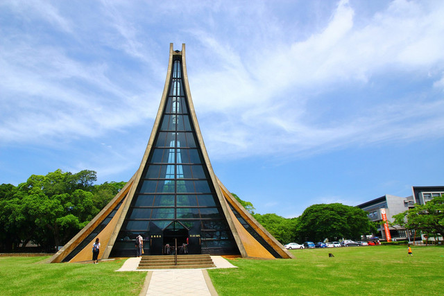 贝聿铭起初想用砖砌哥德式的建筑,但因台湾多地震而取消此意,后来由陈其宽以六角形底座像“倒船底”的形状,逐布修正形成现在的教堂造形。