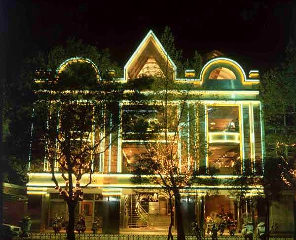 这二年,随着登琨艳在上海知名度的提高,他在上海的事业有了起色。今年,他有二个作品比较引人注目。一个是座落在上海乌鲁木齐路由台湾歌星张信哲投资的酒吧餐厅——三千院。这座规模不大的建筑非常精致,整个建筑手法具有浓郁的后现代意味,玻璃和粗砺的木柱结构,轻盈与凝重和谐的组合。室内的地板,用的大多是别人丢弃的老仓库木料。玻璃外墙简洁通透,与外面的空间融为一体,颇为新颖。登琨艳介绍说,他这样设计,旨在阅读上海的老房子,客人坐在里面,环顾四周:古色古香的老房子,优雅的街景,包括行色匆匆的行人,就象在欣赏一幅幅动人的图画。
