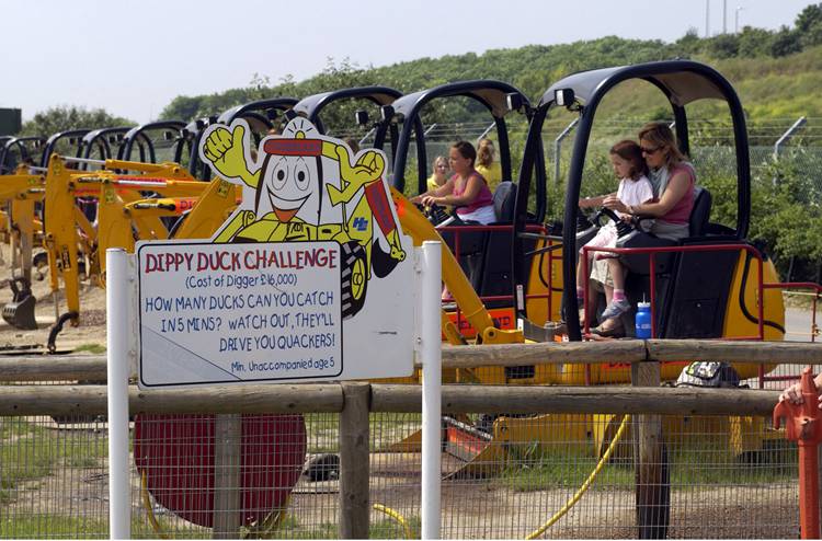Diggerland在英国共有四家,分别位于Kent、Durham、Castleford和Devon。Diggerland Durham,居然是其中年代最老、规模最小的、且发生过事故的。Anyway,如果你曾经梦想开着巨大的挖掘机肆意破坏(心理学中把这个叫做“破坏欲”,那么,无论哪家Diggerland,都完完全全是dream come true!因为Diggerland的母公司,是英国最大挖掘公司H.E.Services。公园里的娱乐设施,都是如假包换的倒弃废物的翻斗车、装载车、挖掘机、铲车。