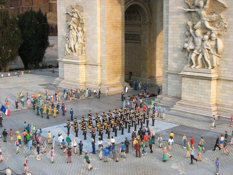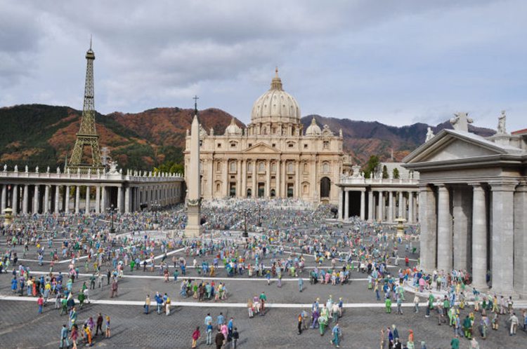 东武世界广场内有全球各地世界有名的建筑物及古迹,由东京塔到中国故宫,甚至是英国的白金汉宫等 102 座建筑物,都是以一比二十五的比例制作而成的。除建筑物外,周边的景物也都细致逼真,梵蒂冈的广场上,聚集的人们犹如真实般的热闹;建筑物旁边的树林亦有如是袖珍盆景一样。能够做成像真度这麼高的成品,皆因制作人员每做一个作品之前,都会到实景考察。