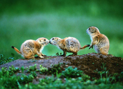 一些人也花费了很多时间挖掘地下通道,但与草原犬鼠不同的是他们需要使用一种巨大的机器。人类历史上最大块头的硬岩钻探机每天能够从岩石中钻出60英尺长的隧道,它重达900多吨,需要25个人才能使它正常运转。然而,草原犬鼠不需要任何工具就能建造庞大的地下隧道。要挖掘带有卧室、浴室和育婴室的洞穴,自然就会挖出大量的土,不过,可以用这些泥土来建造一个有用的堤坝,因为在平坦的草原上如果没有保护性的筑堤,雨水会很容易流进它们的温暖小家。而且这个凸起的土墩,还是一个很好的了望台,要知道,草原上存在着很多危险。当草原犬鼠钻进洞穴之后,除非是大型真空吸尘器,否则你很难让它们出来。犹他州的人们采取的正是这一方法,他们用改造过的下水道清洁器来吸出草原犬鼠,虽然这种方式不太体面,但至少人们还是把犬鼠吸出来,而不是埋葬它们。草原犬鼠的确不愧是我们这个星球上了不起的建筑高手。
