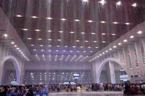 站前广场的几个建筑主要都是用玻璃建造的圆柱形,这主要是为恒定的人群提供的空间,强调的是清晰和自然的布局,并给人一种安全感。表面采用了简单的自然材料,主要是白色混凝土,花岗岩,玻璃和不锈钢,这些材料都大大的降低了维修的要求。夜幕降临时,灯光则发挥出了其特有的功能,既有导航功能,又能够让塔有着良好的通风状态,成为了该地区的一个灯光标志。