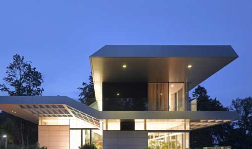 另外,大型玻璃窗和其它滑动元素模糊了室内外空间的界线。卧室位于上层,走上楼梯就能到达卧室,卧室内还有其他楼梯通往宽敞的画廊。地下层部分位于地面下,里面设有健身房、办公室和儿童娱乐室。车库和机械室位于别墅北面的入口道路之下。