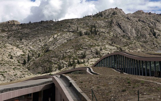 当充分利用自然地形、地貌;采用覆土、功能分散布置等手法将建筑舒展的与大地融合在一起时。看似弱化了建筑形态感的处理手法,实际是借助原有场所的力量,巧妙的扩大了建筑的影响范围;共同形成即延续场所机理又强化建筑坚固感的人工自然地貌。通过比较,我们认为这种形态塑造手法更适宜本项目所在场地的特色。由此提出“大地褶皱”的建筑形态意向,塑造融合于自然景观中的建筑;建成后的人工自然场所将强化地质公园的主题,并与所在环境共同构成本案独特的视觉印象。